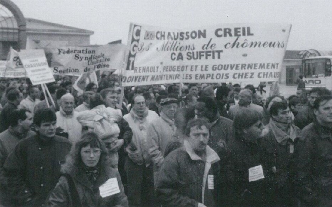 Années 90. Manifestation des Chausson devant la gare de Creil. DR/Archives Montataire