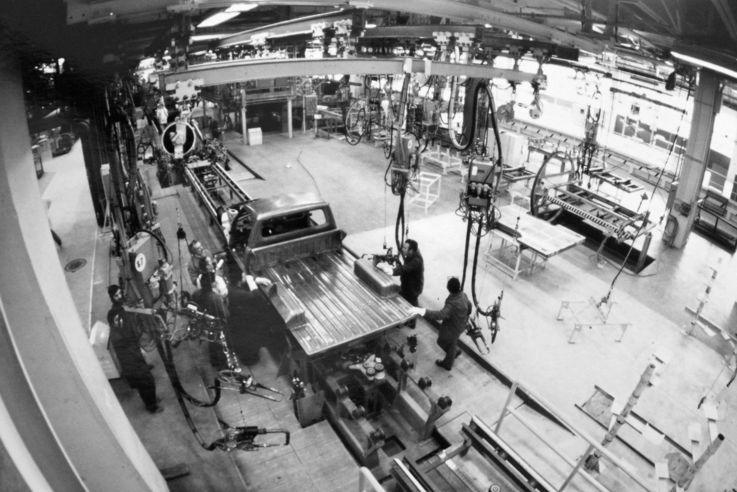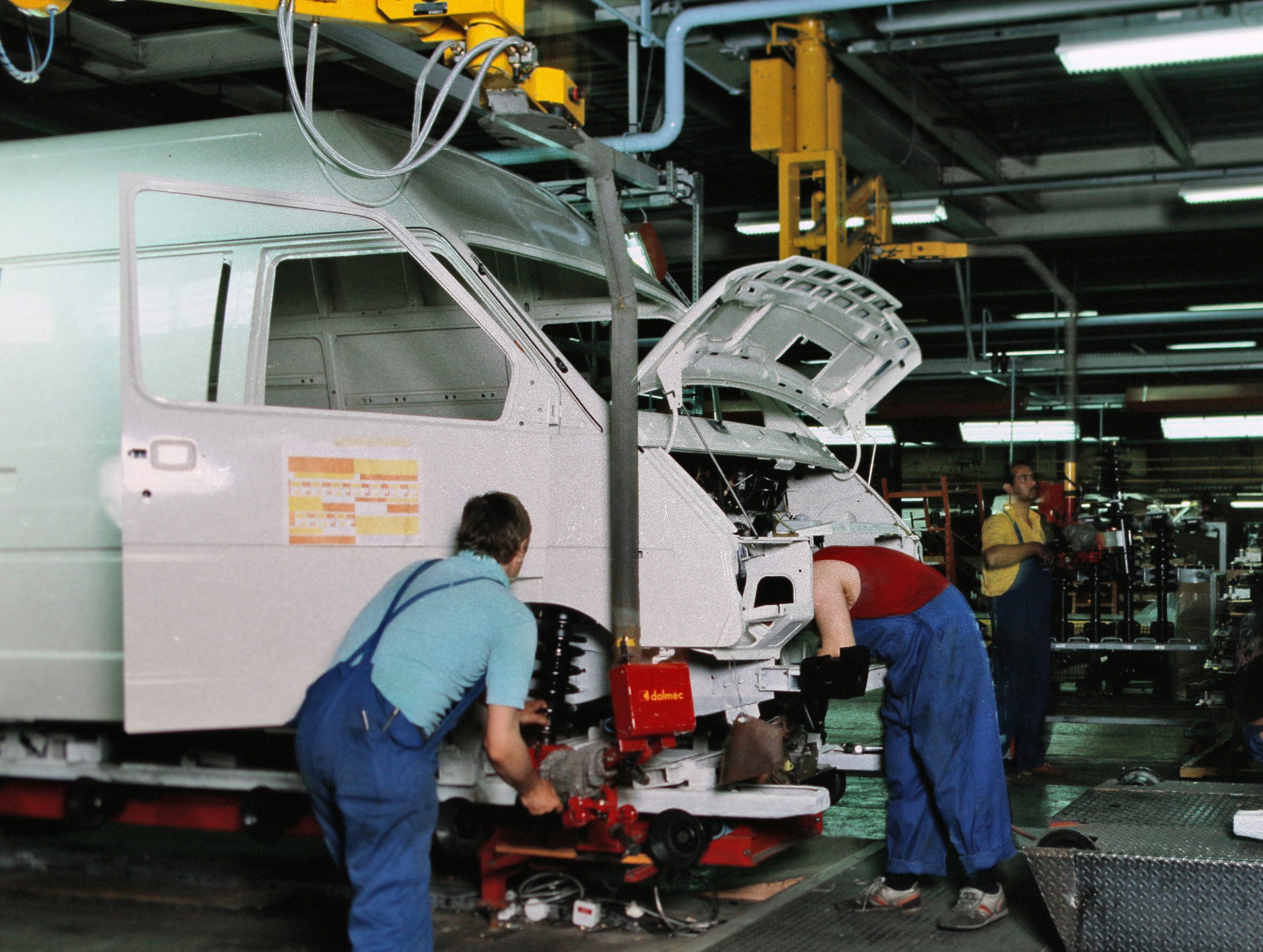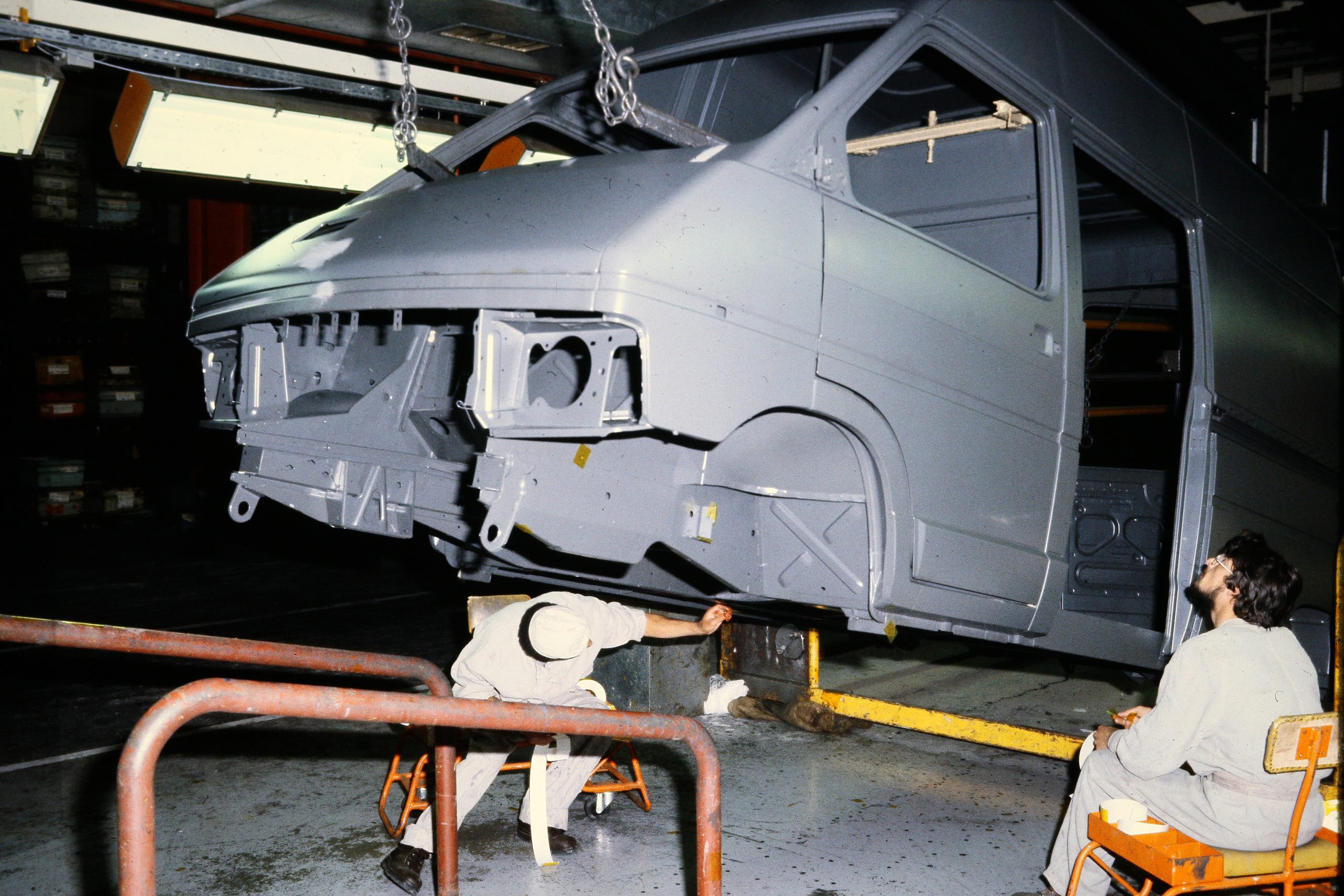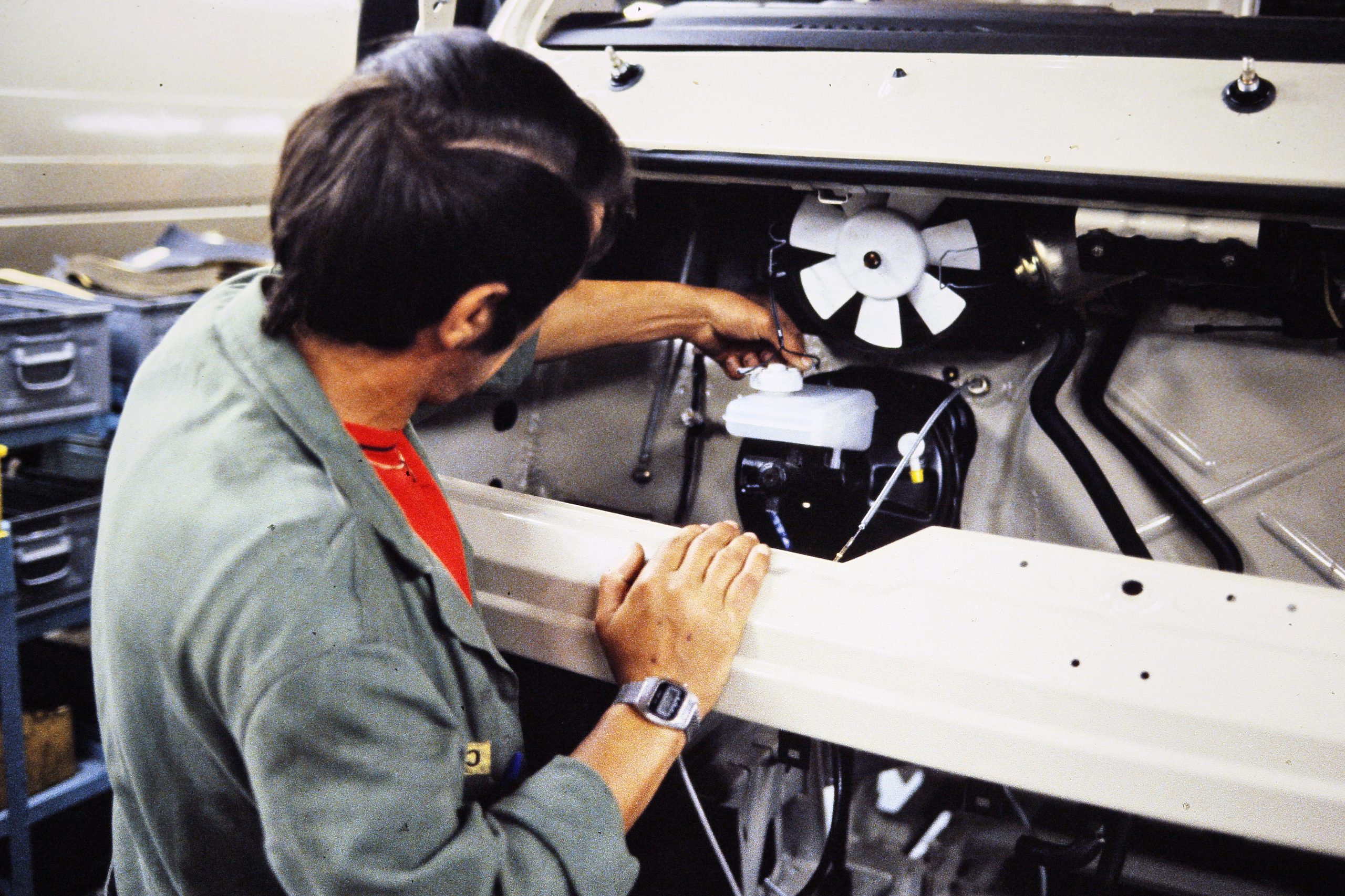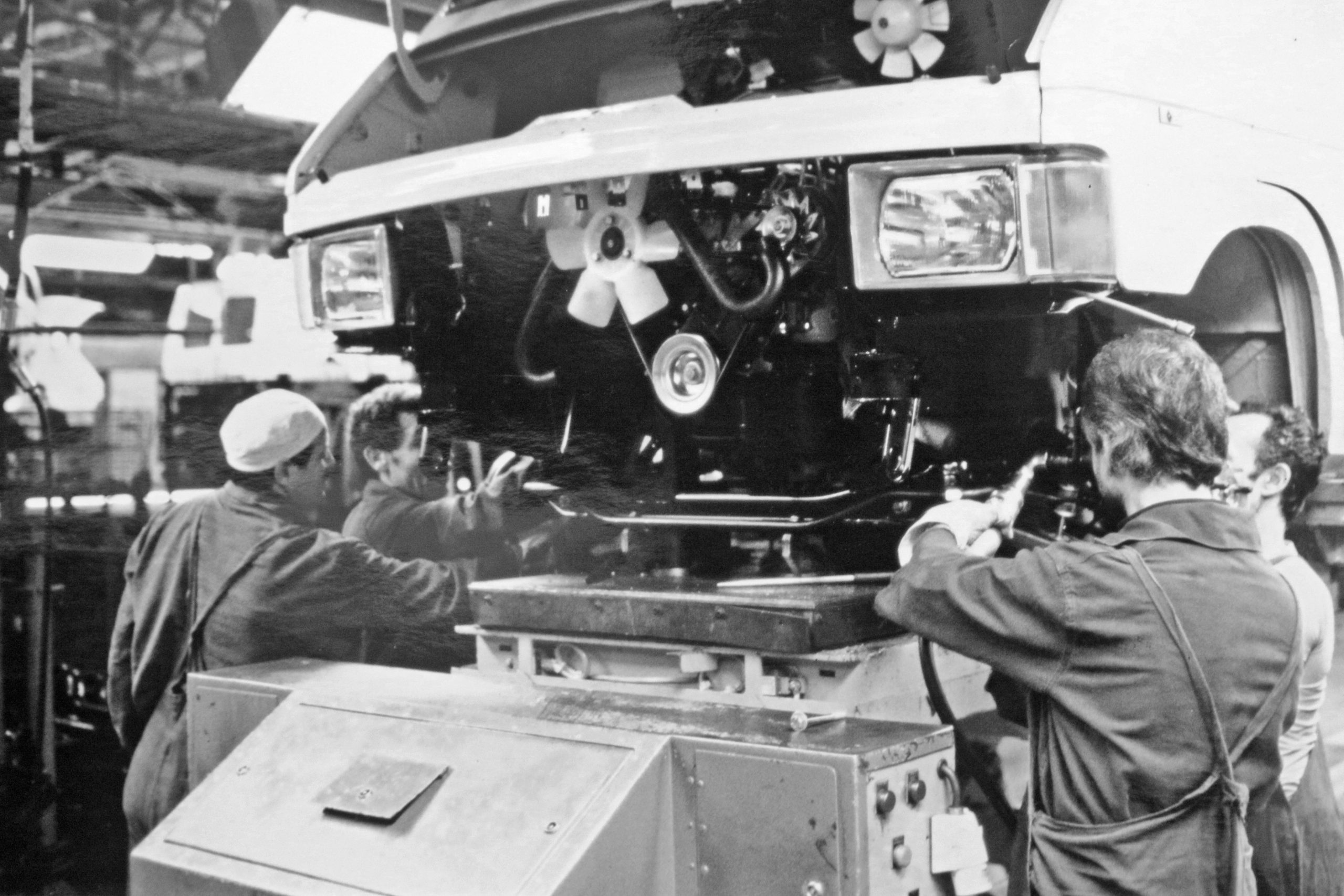 Un atelier de retouche sur les lignes de la Peugeot 205.DR/S.C. DR/Archives Montataire